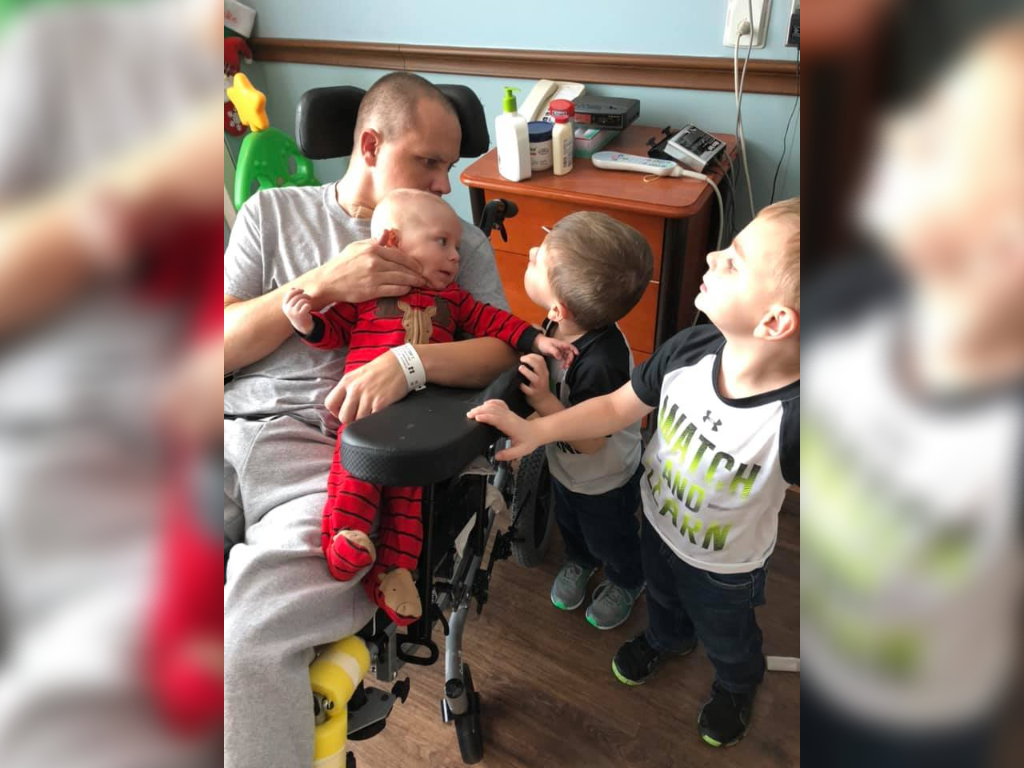 Now, Tony Belt is able to sit up and celebrate the holidays with his wife Kyli Belt and their three sons.