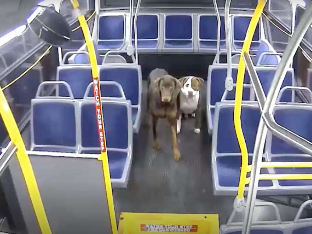 Grabowski waited for dispatchers to arrive with the pups. In video footage of the incident, the dogs sit in the bus aisle, waiting for an officer to come by and lend a hand.