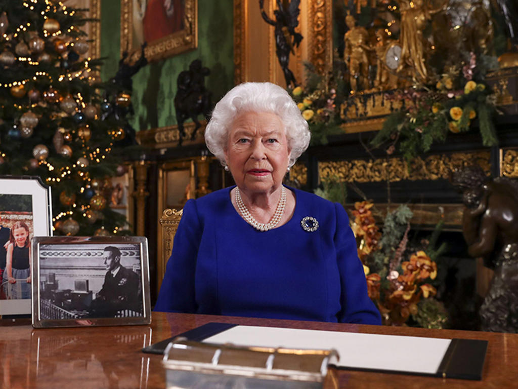 Kensington Palace also released a photo from the Queen’s speech on Instagram. In the picture, Queen Elizabeth II is sitting at a desk with framed photos around her.