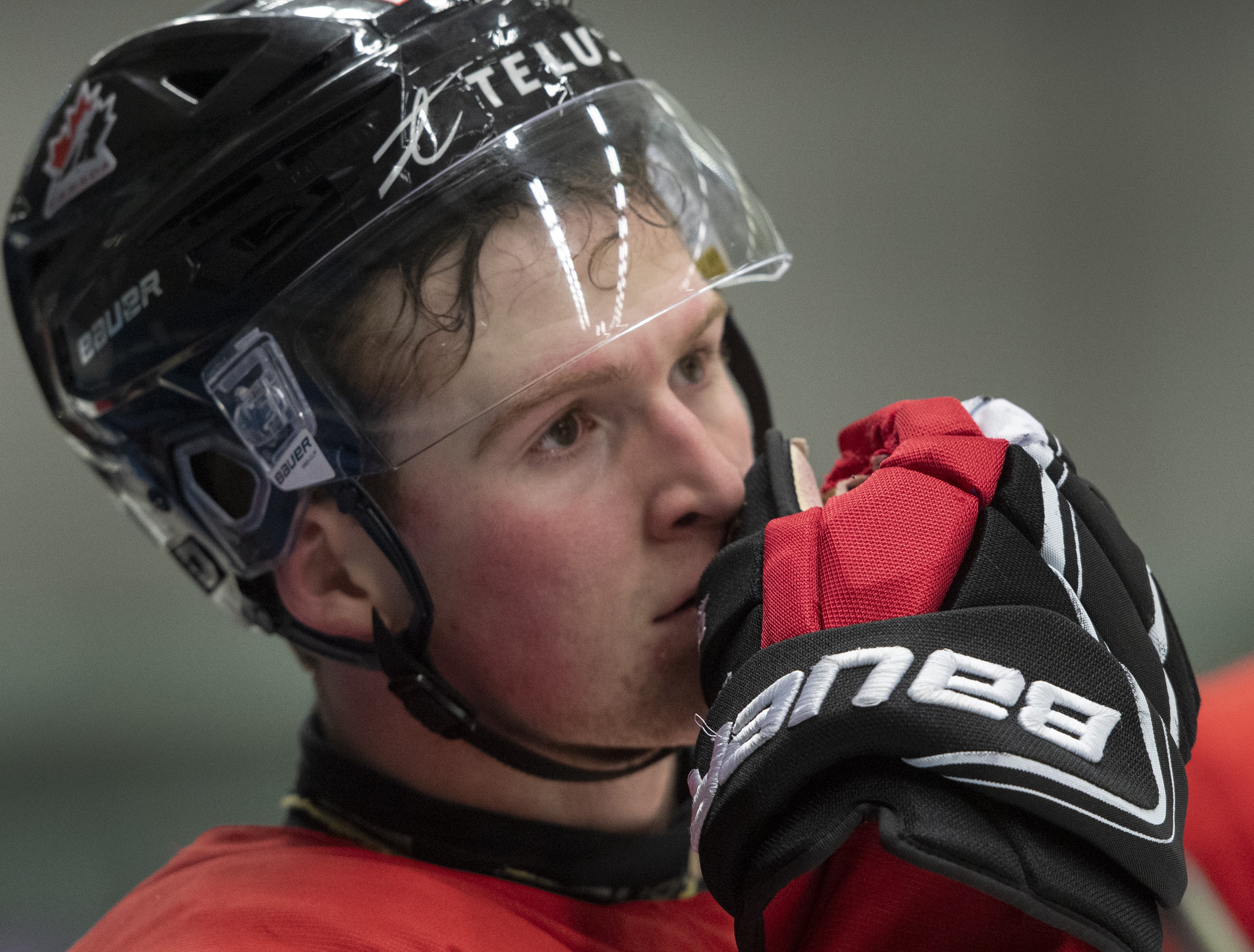 “It’s hard for him to not be out here,” Canadian captain Barrett Hayton said. “We love having him around and the energy he brings.”