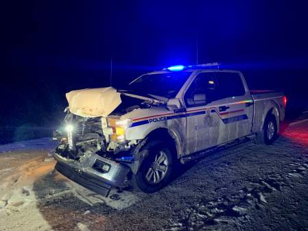 When RCMP located the truck, officers tried to stop the vehicle again. It was at this point that the suspicious truck rammed the RCMP truck and it became damaged and inoperable.
