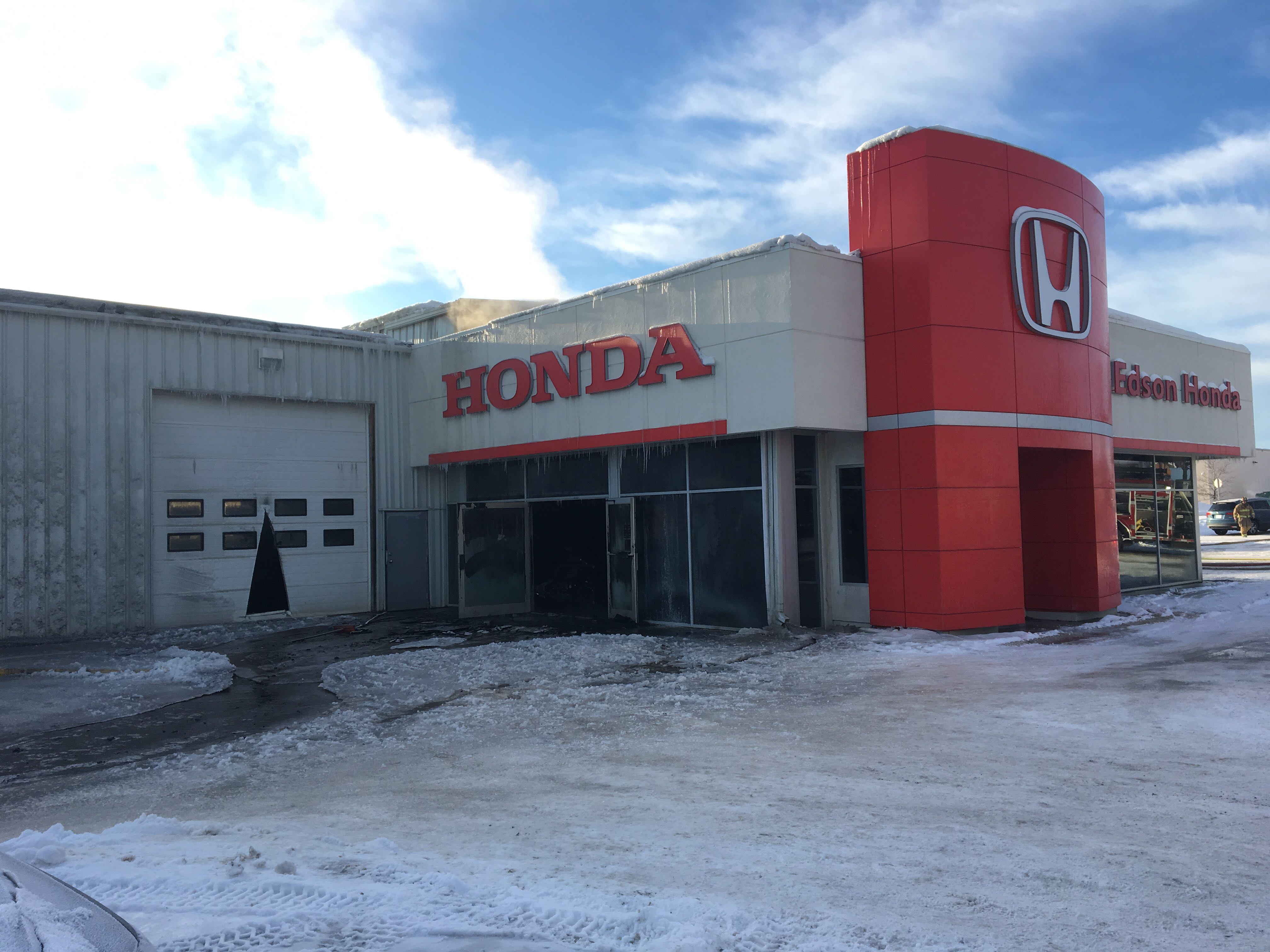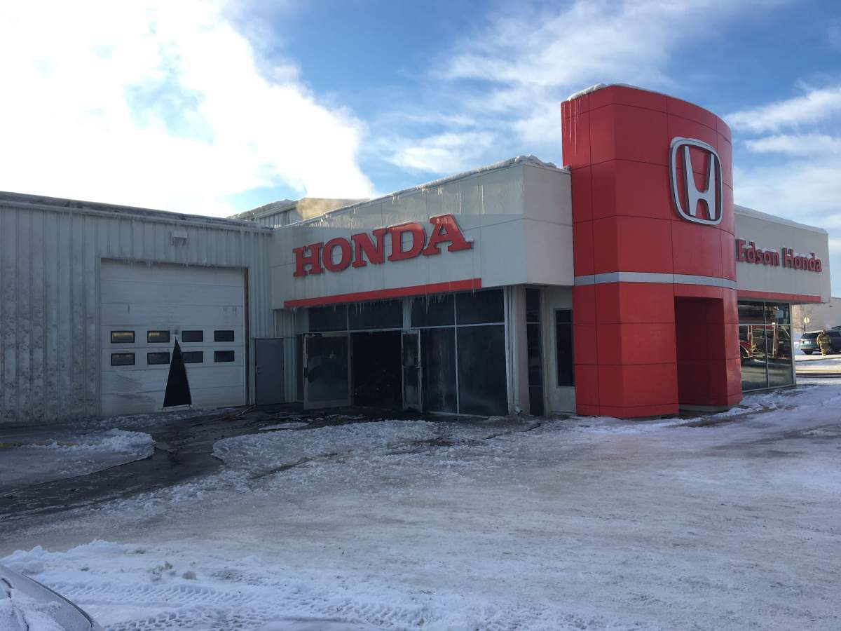 Fire crews from Edson and Yellowhead County were called in to battle a blaze at the Edson Honda dealership at around 5 a.m. Monday, according to the Town of Edson.