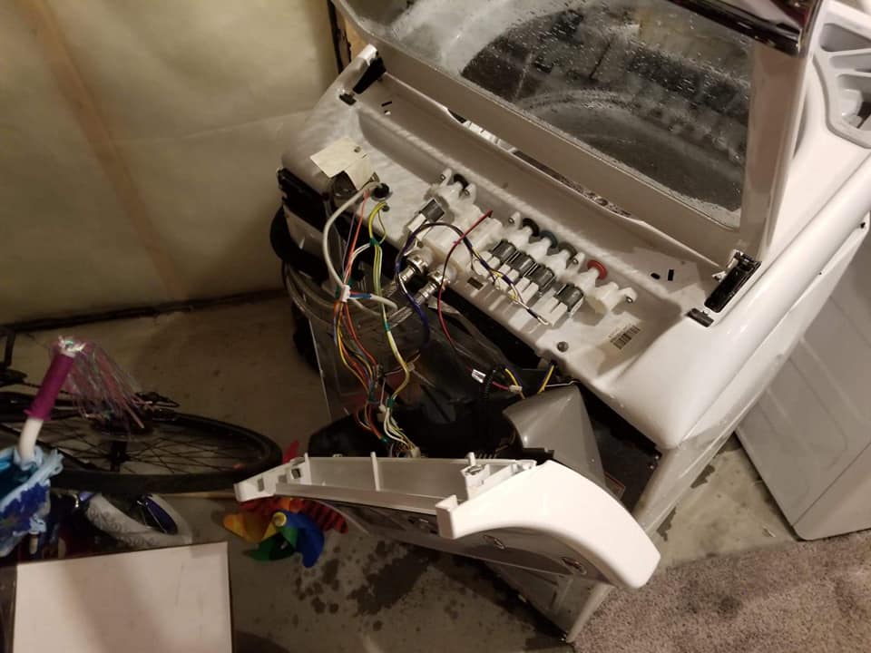 According to Lewis, the explosion blew apart wiring, the sides and back, and knocked the machine into her dryer as well as the hot water taps, as it rotated a full 90 degrees.