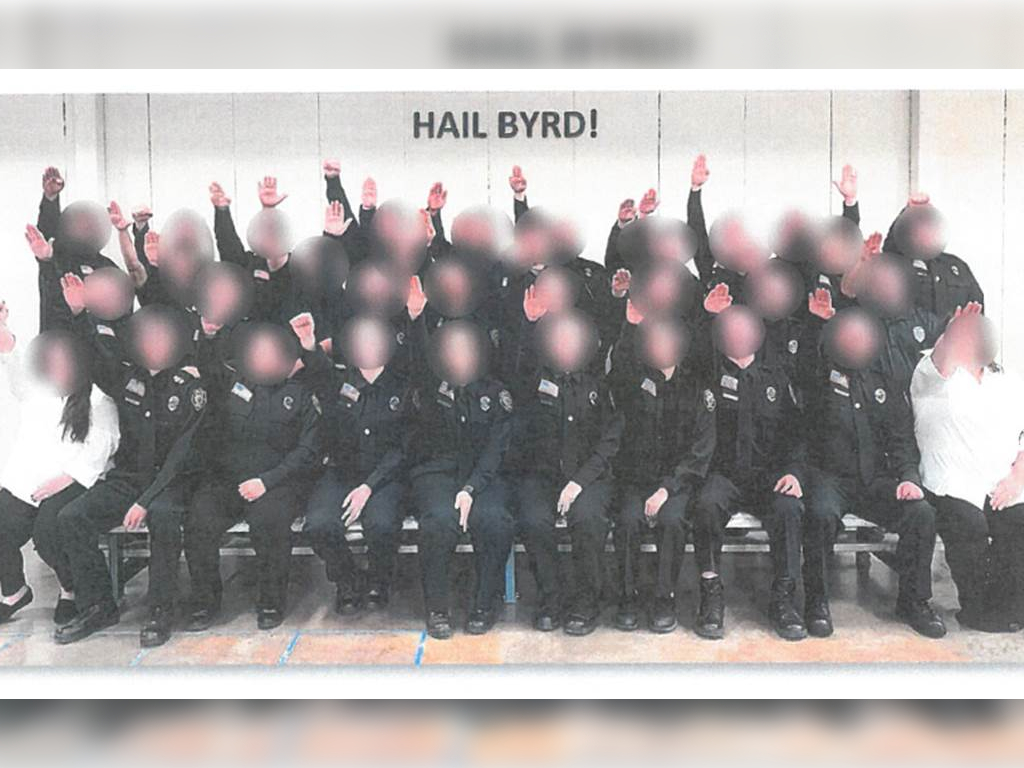 The photo in question shows trainees in their official uniforms performing a Nazi salute. The photograph reads “Hail Byrd!” at the top, which refers to their instructor Karrie Byrd.