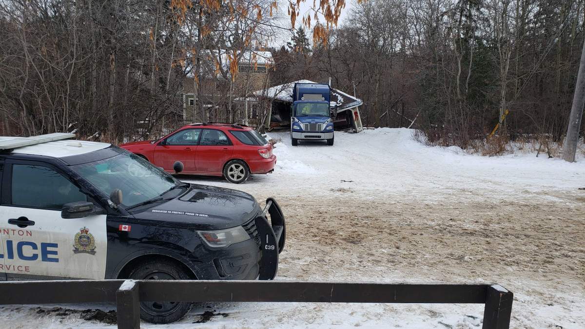 The residence has heritage designation with the City of Edmonton. Because of that, tow trucks aren’t allowed to move anything until approval is given.