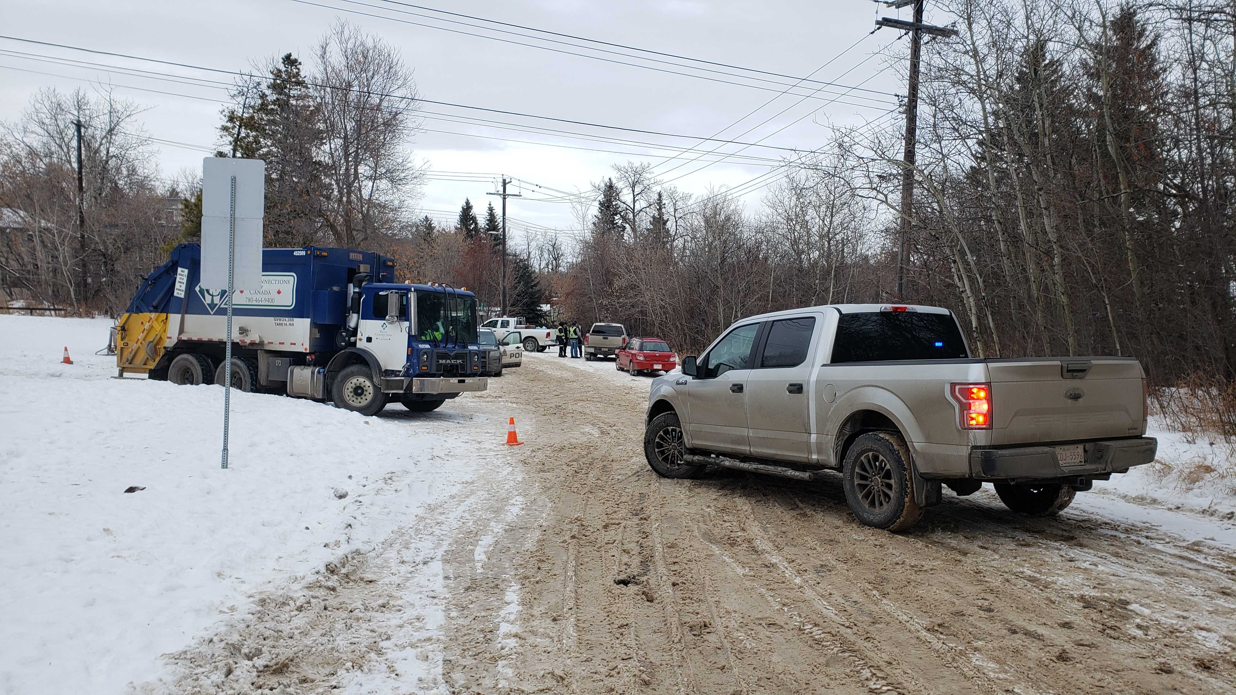 “This is a pretty quiet little lane,” neighbour Kathleen Hunter said. “I just came around the corner and wow, flashing lights, lots of police cars and incredulously, a waste disposal truck that looks like it’s backed almost right over top my neighbour’s garage. So that’s pretty shocking!
