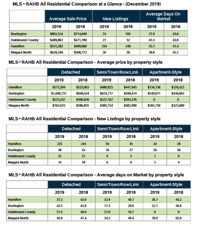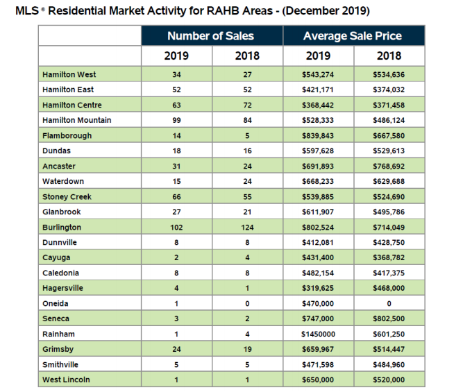 December 2019 was a slow month for home sales in the Hamilton and Burlington areas.