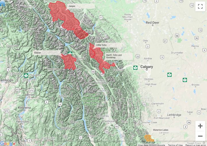 The avalanche risk in the alpine region of these parks is expected to remain high through the weekend.