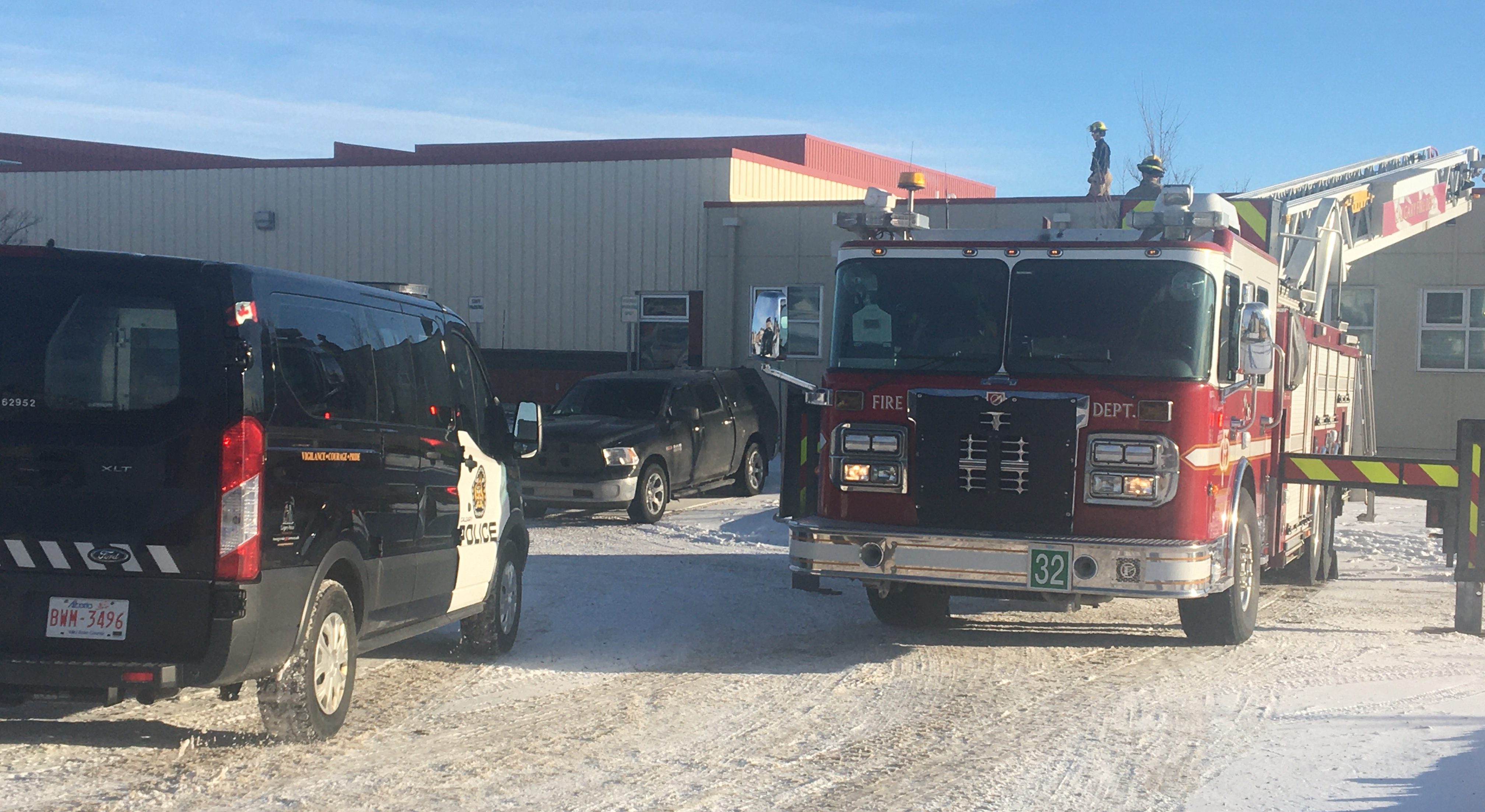 Calgary Search and Rescue members were looking for evidence just east of the crime scene in the parking lot of Saddle Ridge School. Members of the Calgary Fire Department were on the roof of the school, also apparently searching for clues.