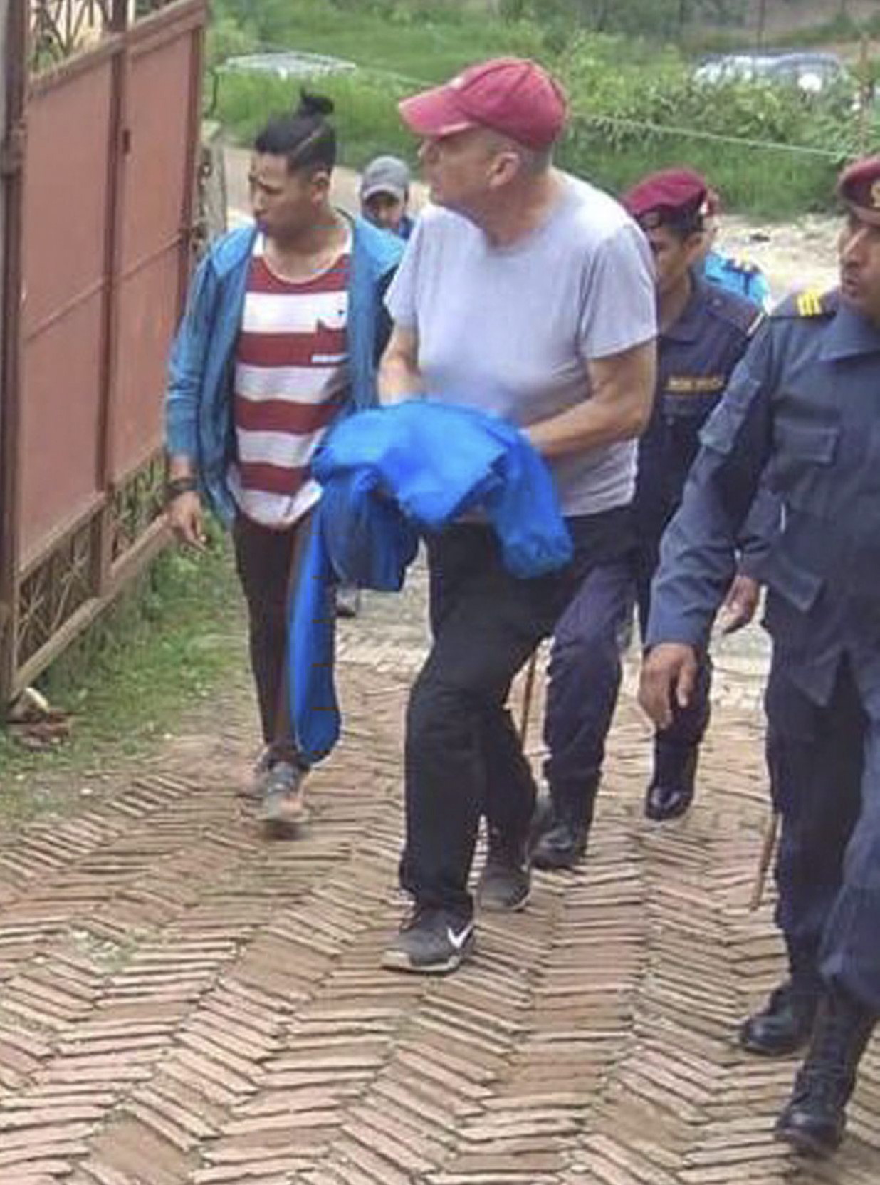 Nepalese police arrested him in the early hours of April 8, 2018, at his mountain home in the village of Kartike, east of the capital of Kathmandu. Police alleged he had raped two Nepalese boys aged 11 and 14, who were in his home.