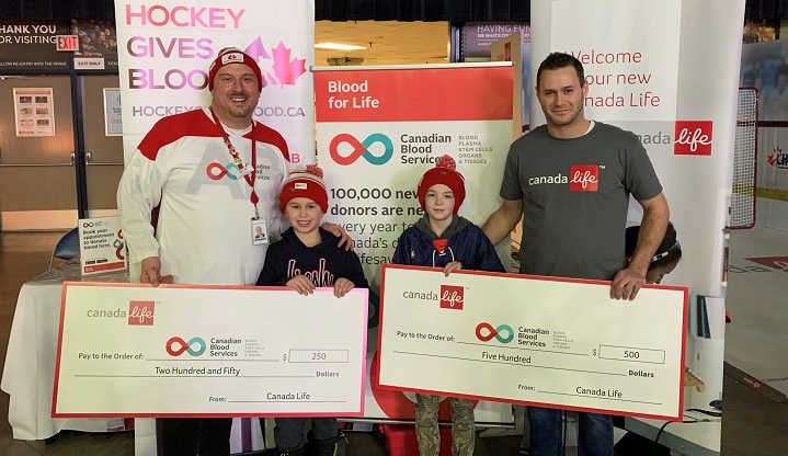 Canada Life invited Lincoln Honoway, 7, and Vonn Chorneyko, 10, to shoot for the chance to have a $500 donation made to Canadian Blood Services in each of their names.