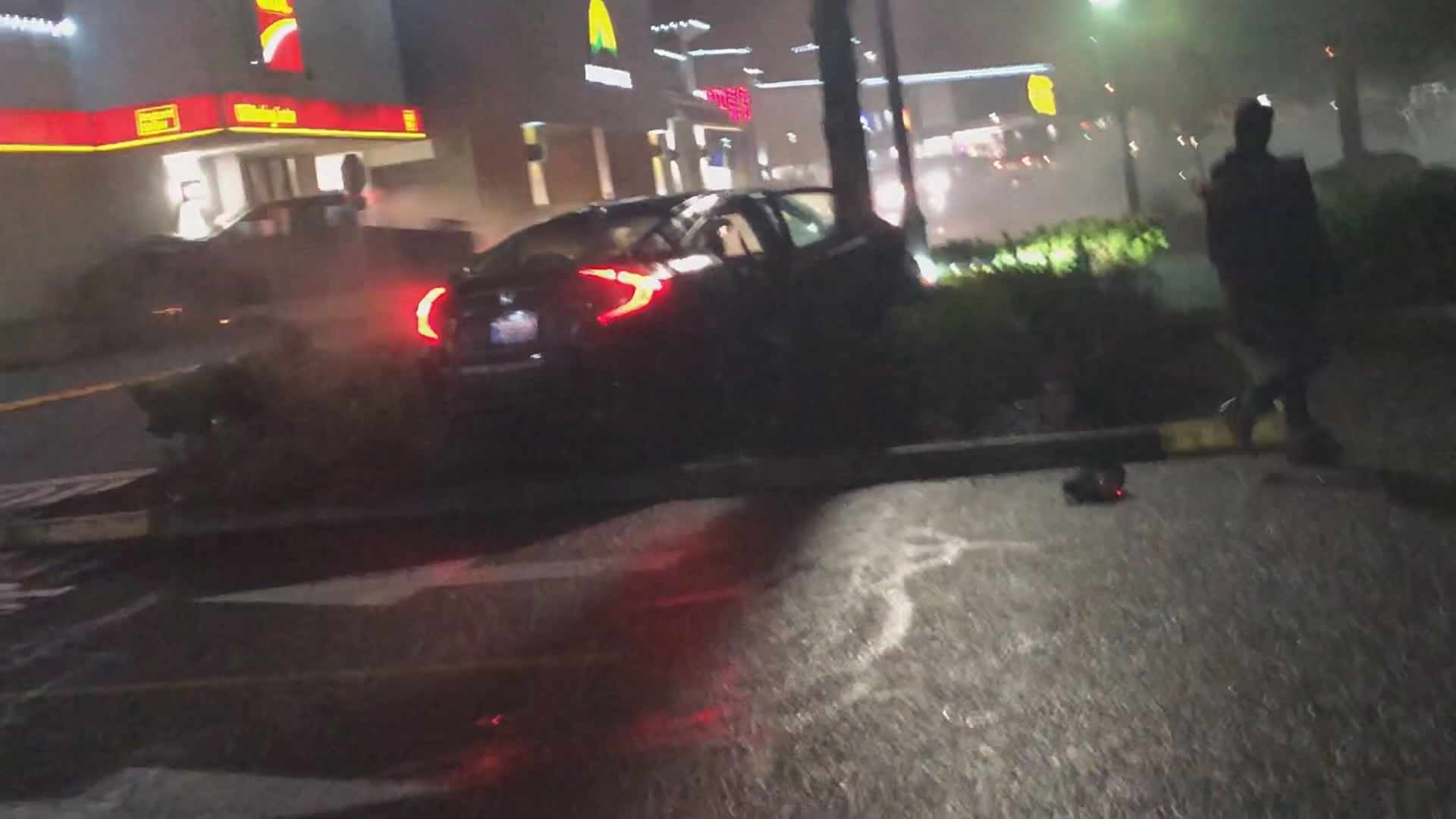One of those vehicles, a newer-model Honda Civic, was “destroyed,” according to police, but its 30-year-old occupant was unharmed.