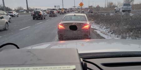 Westhead says traffic was crawling, so he walked up to the car in the lane closest to the shoulder and tapped on the window. He says the driver was “oblivious” to his presence despite having his cruiser lights fully activated.