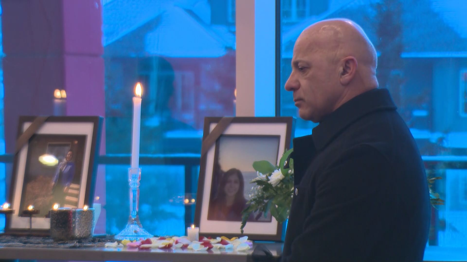 Black-clad friends gathered at a memorial in the Ambleside neighbourhood to watch slideshows containing photos of the smiling women.
