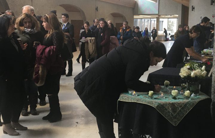 A University of Calgary theatre was packed and guests spilled out into the hallway to watch the service on monitors on Sunday, as hundreds mourned those killed in the Jan. 8 plane crash in Iran.