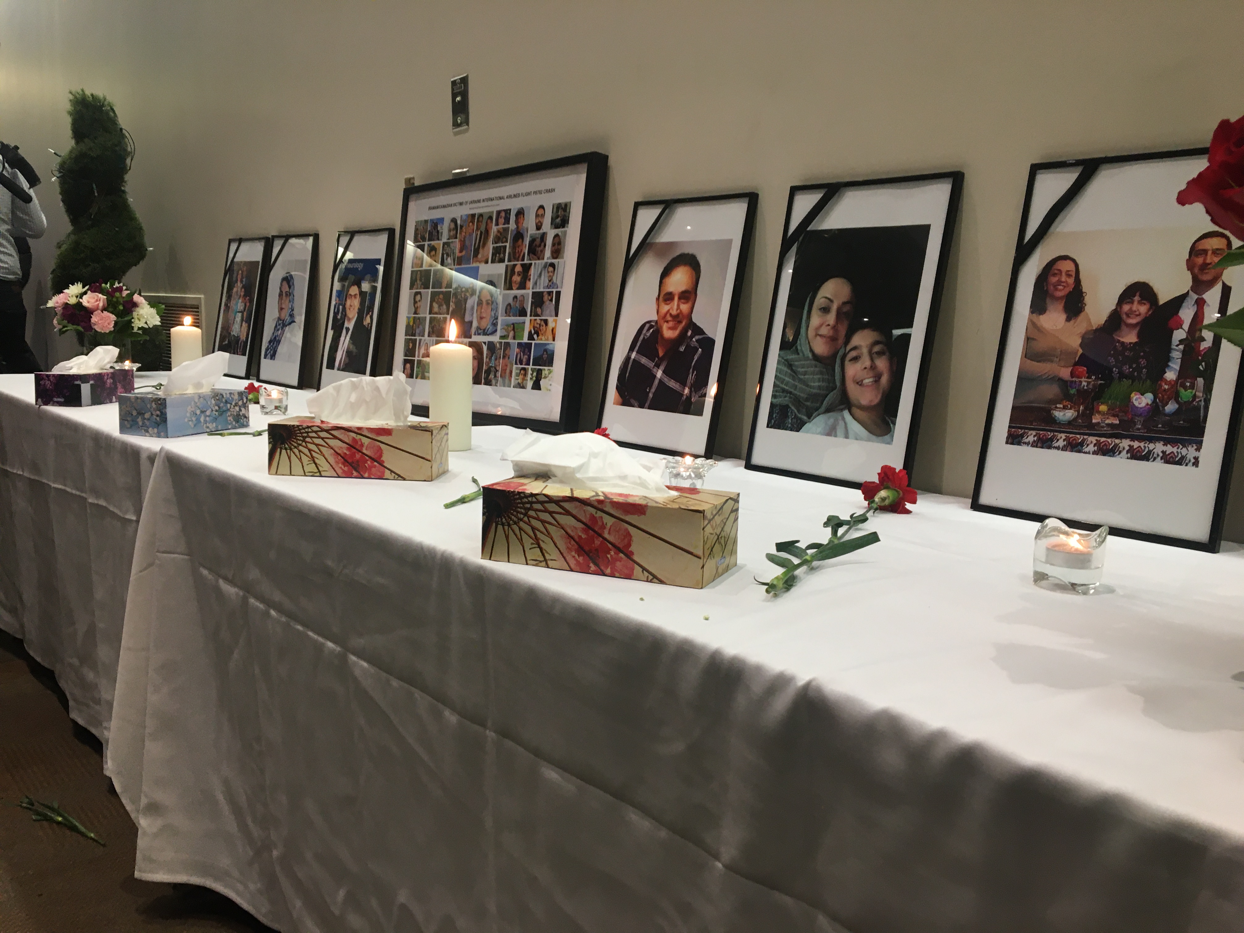 Wiping tears, the city’s Iranian community, politicians and other mourners gathered in the Caboto Centre. By the time the vigil began just after 2 p.m., some 500 people had crammed into the banquet hall, leaving standing room only for straggling mourners.