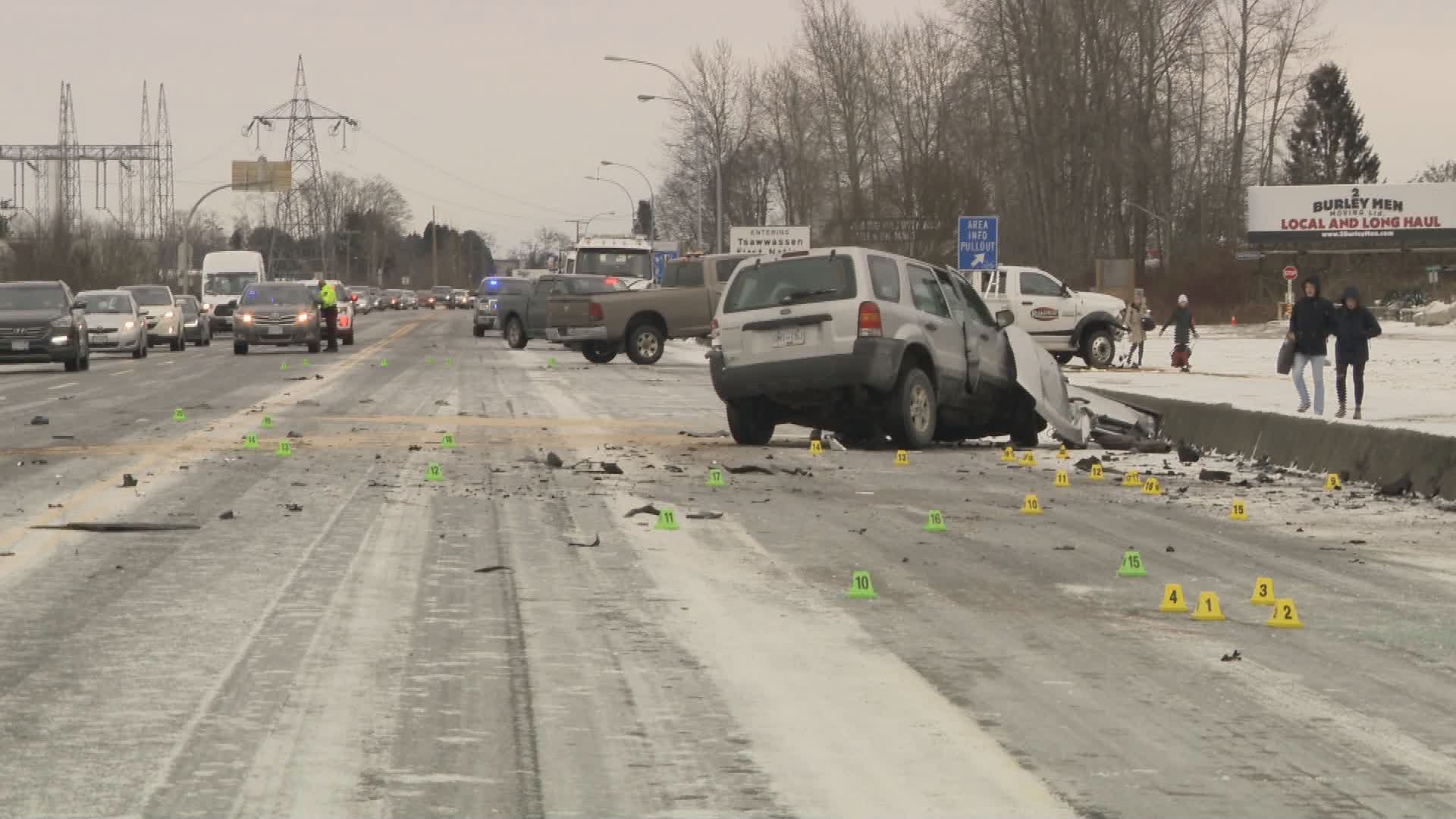 One person was seriously hurt and BC Ferries was forced to alter its schedule after a multi-vehicle crash on the causeway to the Tsawwassen terminal.