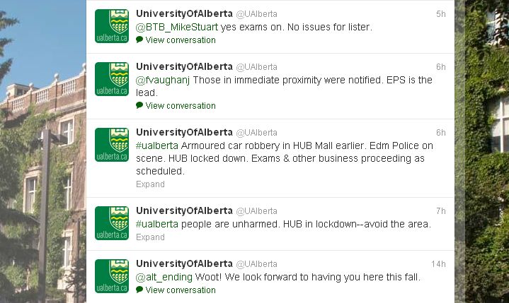 The shooting was reported at 12:08 am. According to external report, Edmonton police informed HUB residents what was happening over a load speaker about an hour and a half later. By 3:28 am, information was spreading on social media and posted on the university’s webpage. A text email notification was sent hours later.