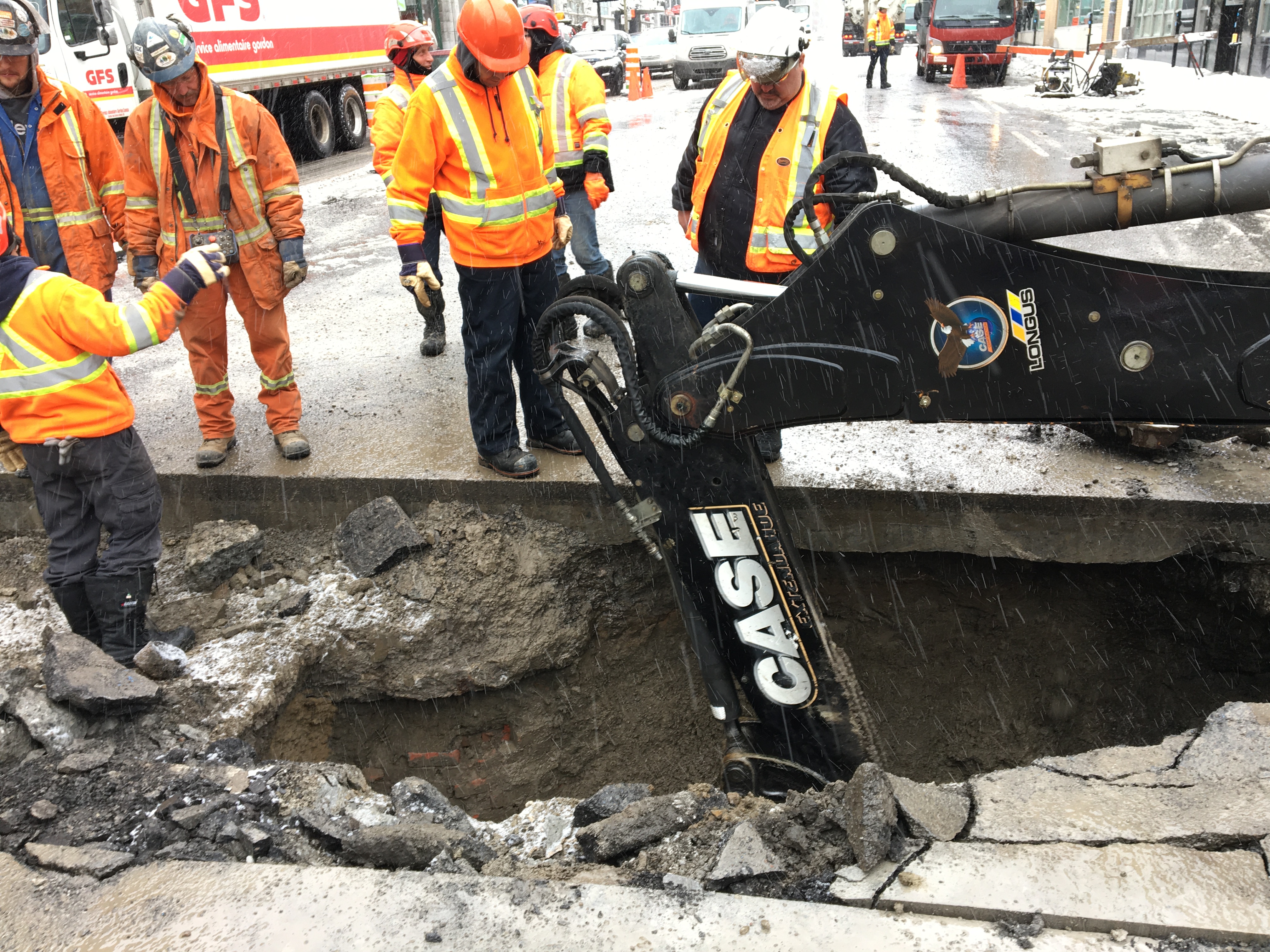 The gaping hole forced the city to put orange cones around the area in the Plateau-Mont-Royal borough so drivers would avoid it.