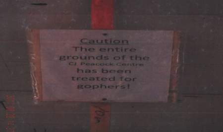 Strychnine was applied in the area of the CJ Peacock Centre, which has served as the community’s council chambers, municipal office, community centre, public gym, library and playground. RAMEX was applied in the area of the village’s campground, which is next to a baseball diamond.