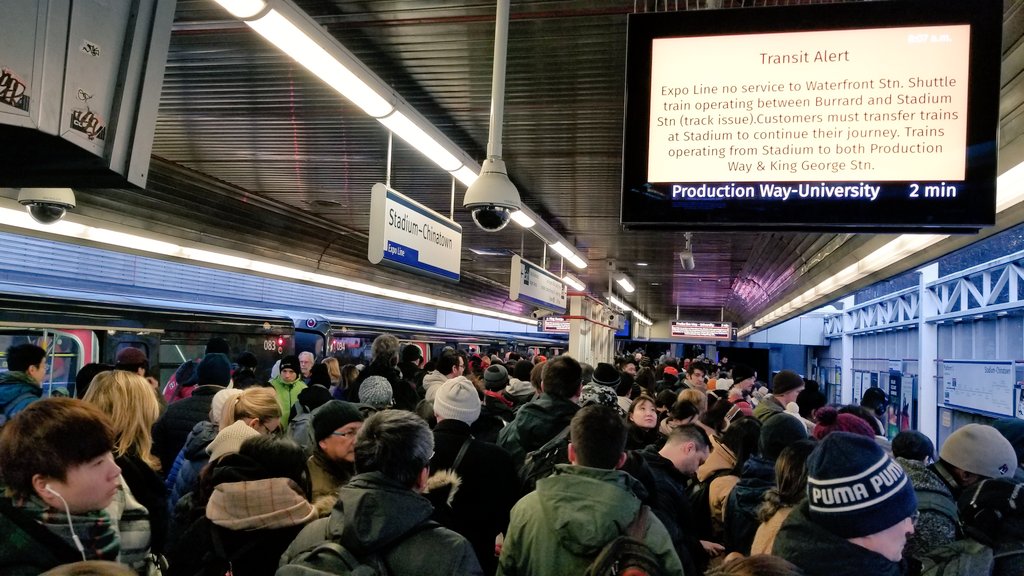 SkyTrain, however, was still suffering problems Friday morning, with a track issue preventing any trains from getting in or out of Waterfront Station for most of the morning.