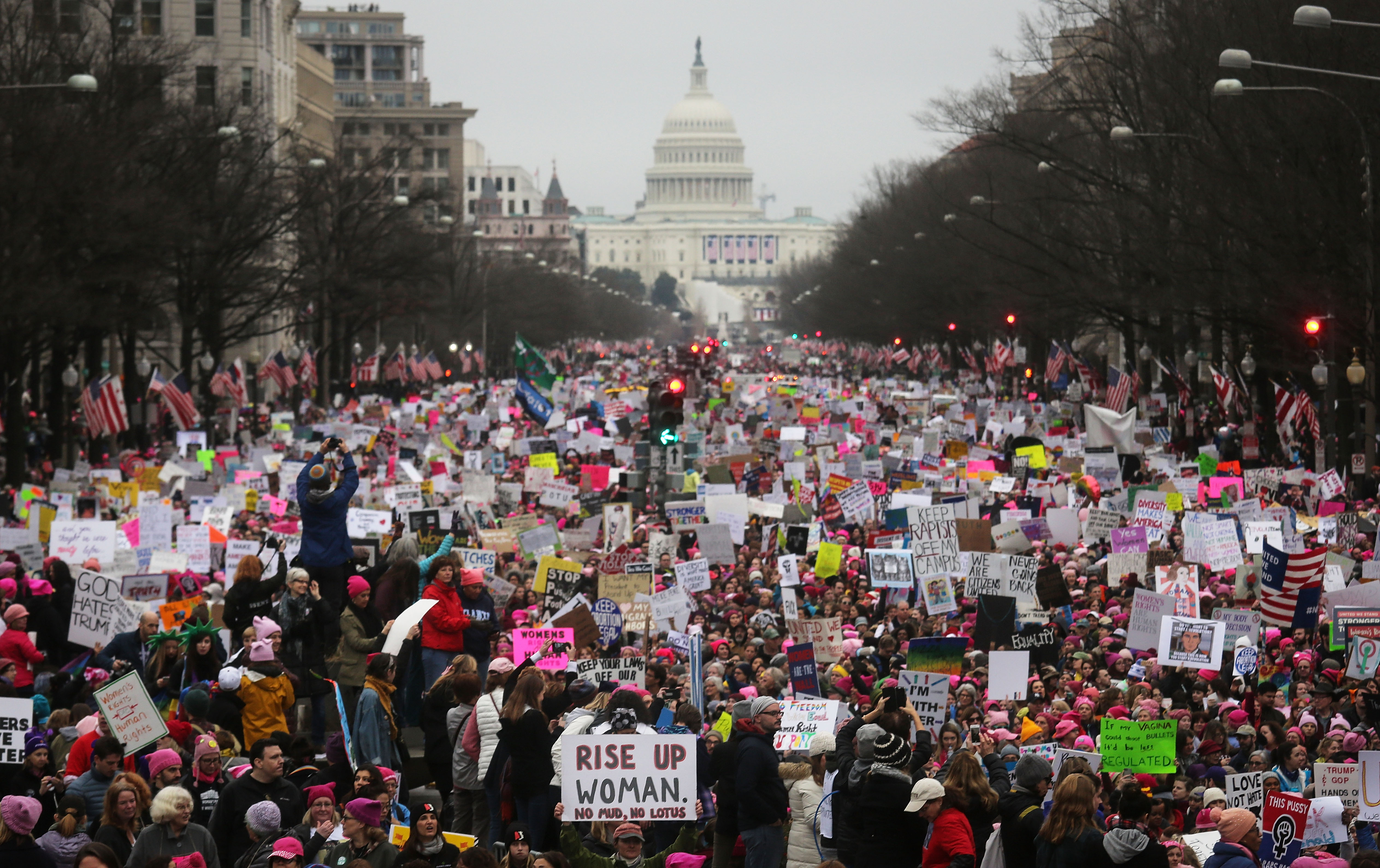 The 2017 Women’s March took place just after Trump’s inauguration. Nearly one million people attended.
