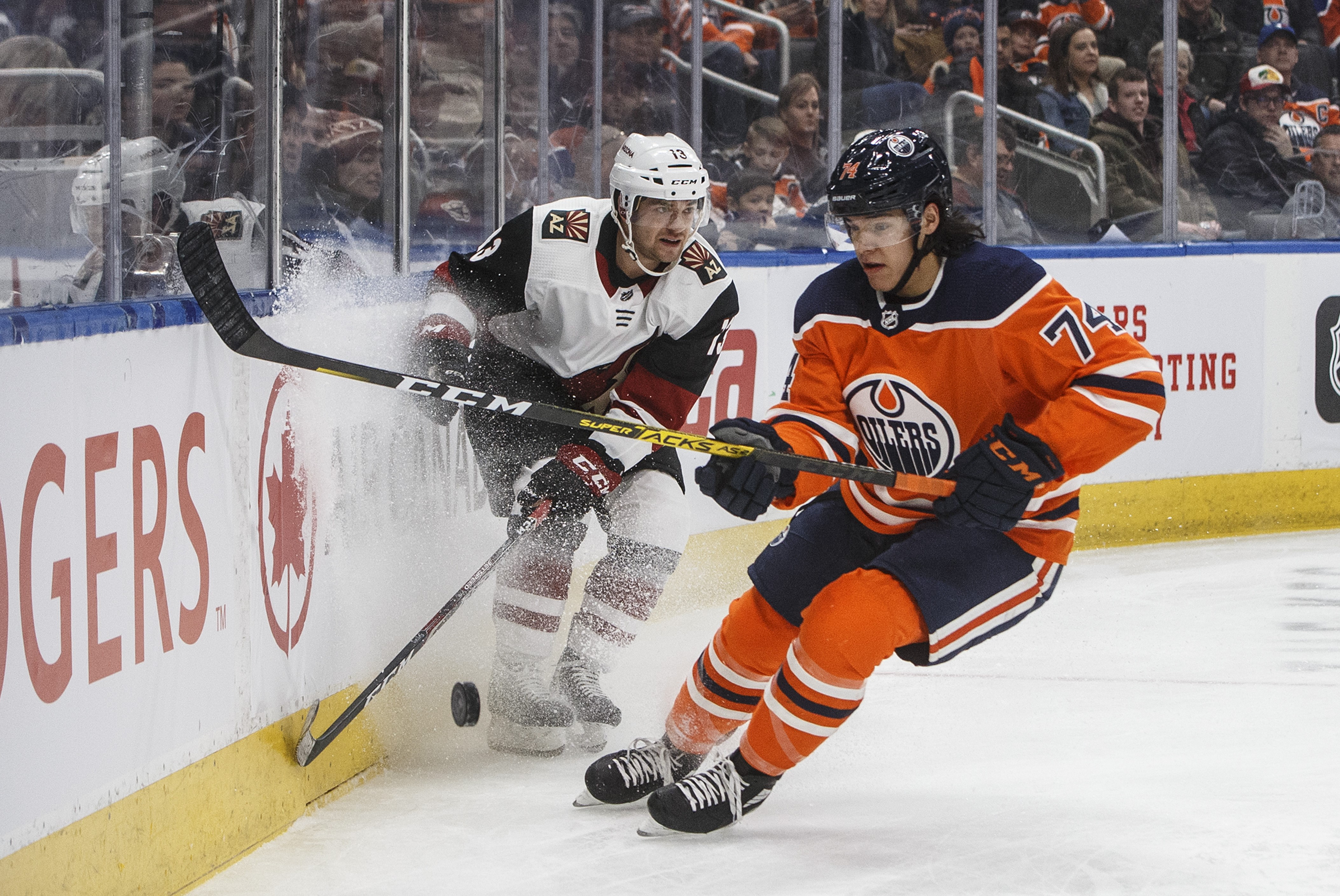 The Oilers took the lead on a shorthanded goal by Josh Archibald 3:56 into the game. Archibald twisted past Oliver Ekman-Larsson then beat Antii Raanta on a forehand deke.