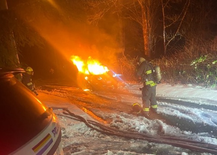 Langley RCMP responded to reports of a vehicle fire near 206A Street and 73B Avenue Sunday night, which police believe to be the suspect vehicle.