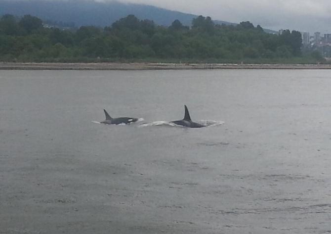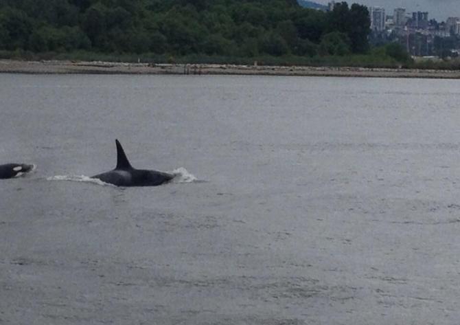 Whale watchers, boaters and spectators hoping to catch a glimpse of the orcas were lucky to spot the whales breaching near Lions Gate Bridge.