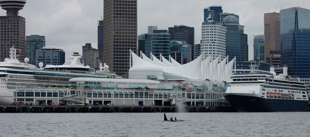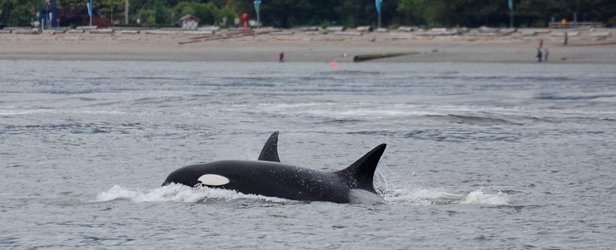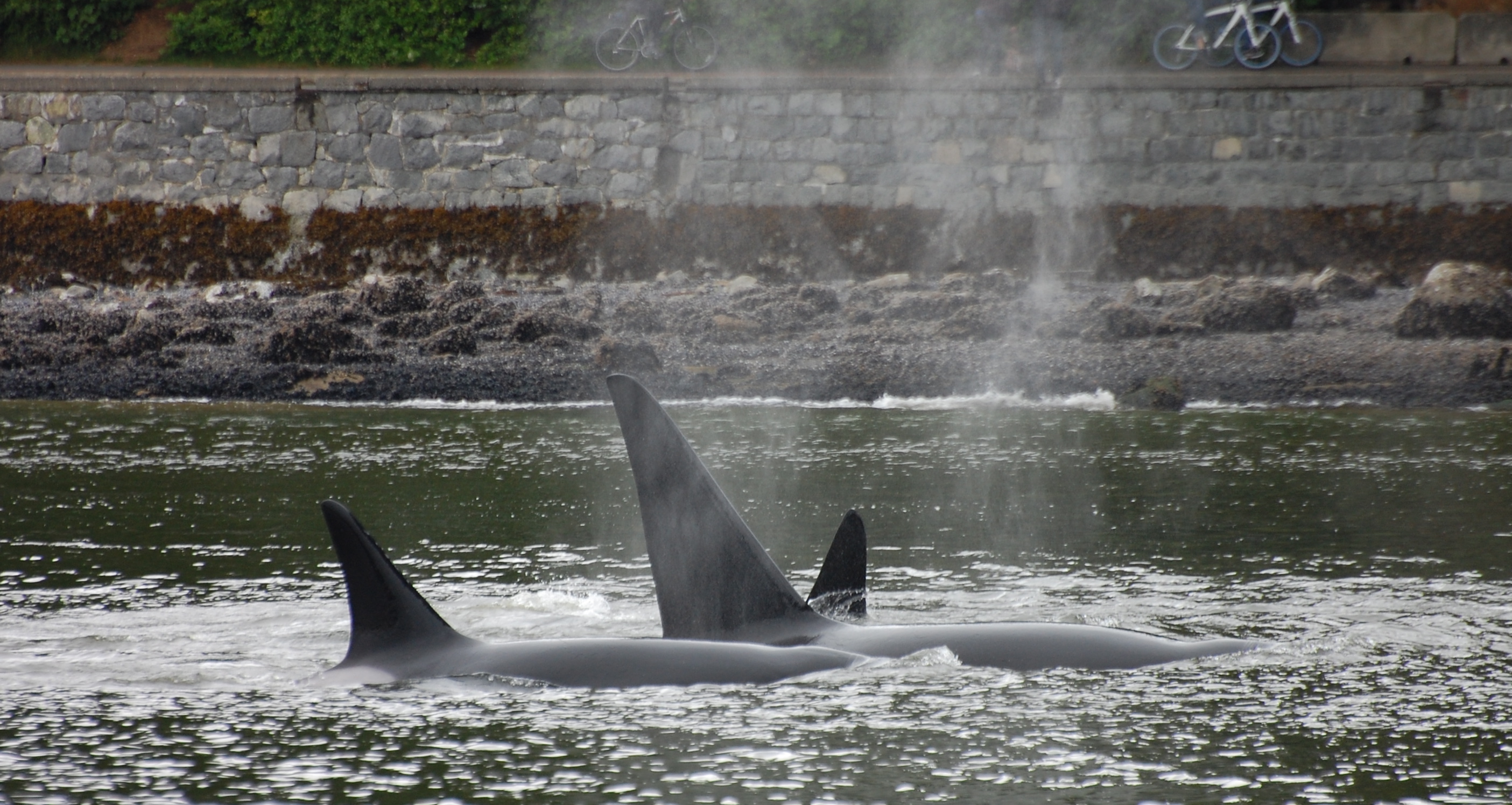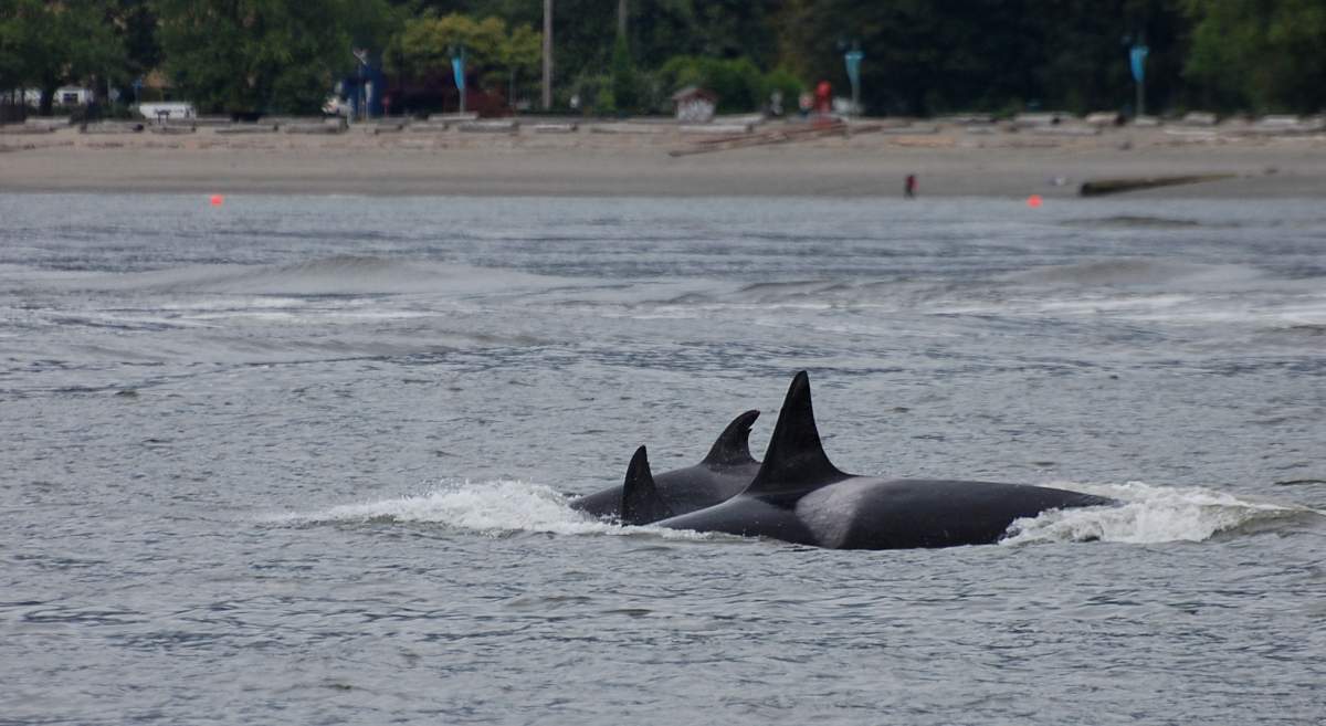 A large crowd gathered in Vancouver’s Stanley Park to welcome a pod of killer whales to Burrard Inlet Friday afternoon.