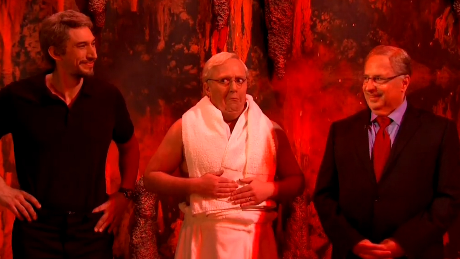Hell on SNL apparently houses Jeffrey Epstein, the multimillionaire sex offender who died last year in a New York prison. He’s played by actor Adam Driver, who shows up and jokes that he’s “just hanging.”