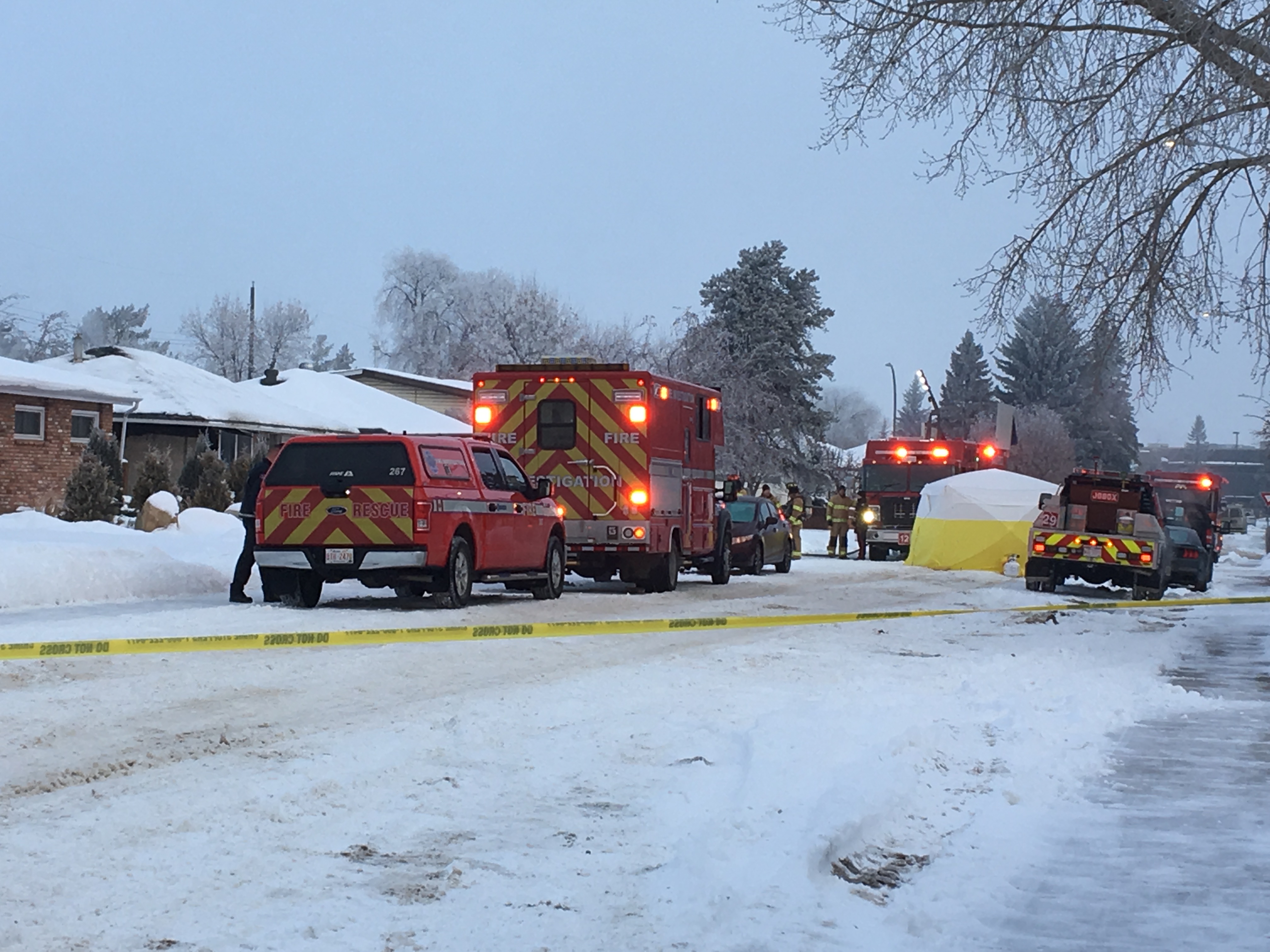 About six crews arrived three minutes later and began to put out the fire at the back of the house, Edmonton Fire Rescue Services district chief Will Chabaniuk said.