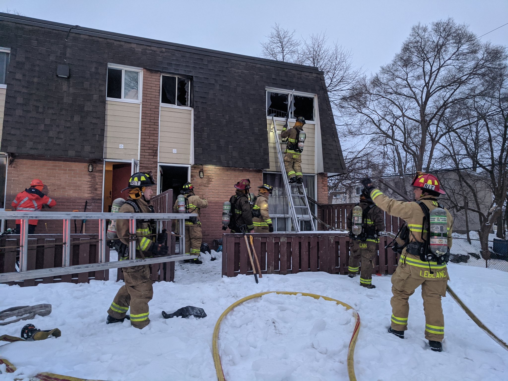 When firefighters arrived five minutes later, they found “black smoke” and “heavy flames” coming from the unit’s second floor, according to Ottawa Fire Service’s public information officer, Jen McNeely.