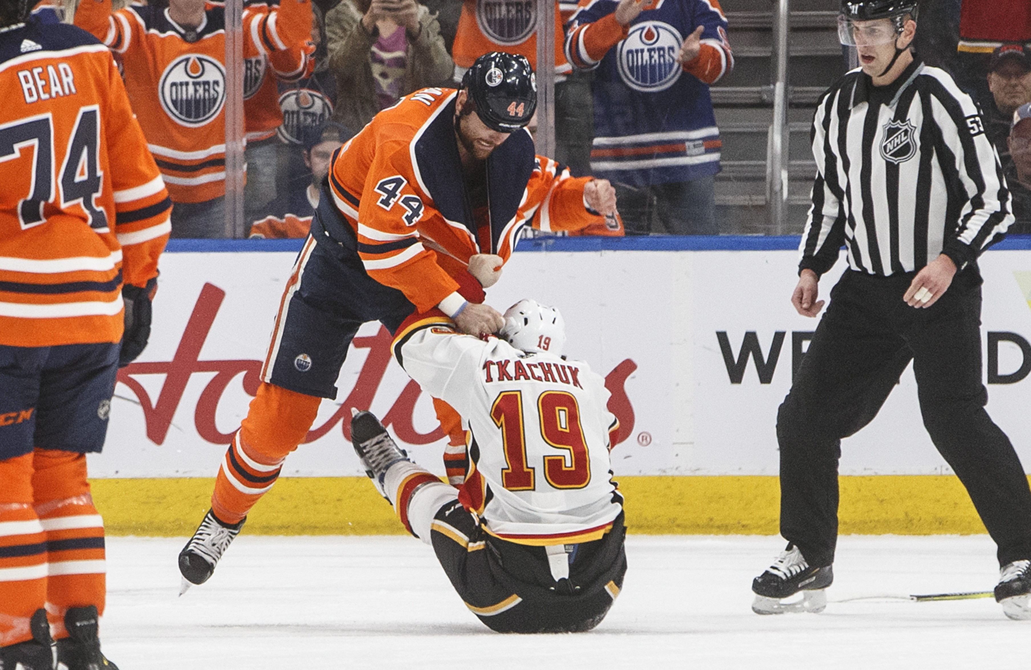 Then, it was the one fans had been waiting for. Zach Kassian and Matthew Tkachuk went toe-to-toe off a face off in the Flames end. Kassian was in control over the course of the brief bout.