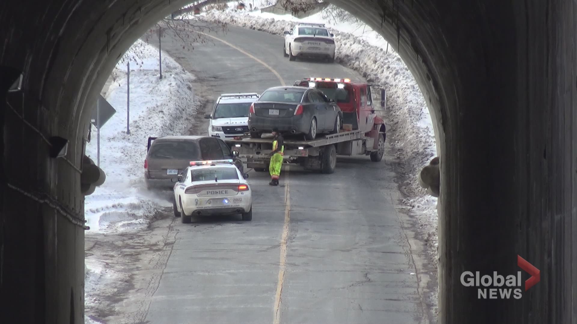 During the pursuit, police say a three-vehicle collision occurred involving two civilian vehicles and a police cruiser in the area of the Liftlock at Armour Road and Hunter Street.