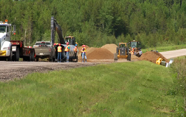 PRINCE ALBERT, Sask. – A huge sinkhole has closed both lanes of a Saskatchewan highway north of Prince Albert.