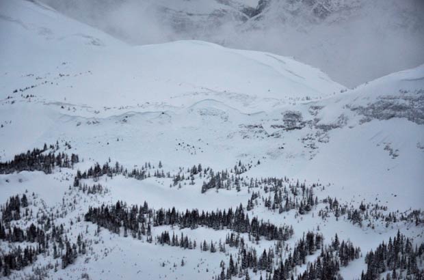 Move off the slab of snow at a 45 degree angle before the slab breaks up and falling snow sends you for a tumble.