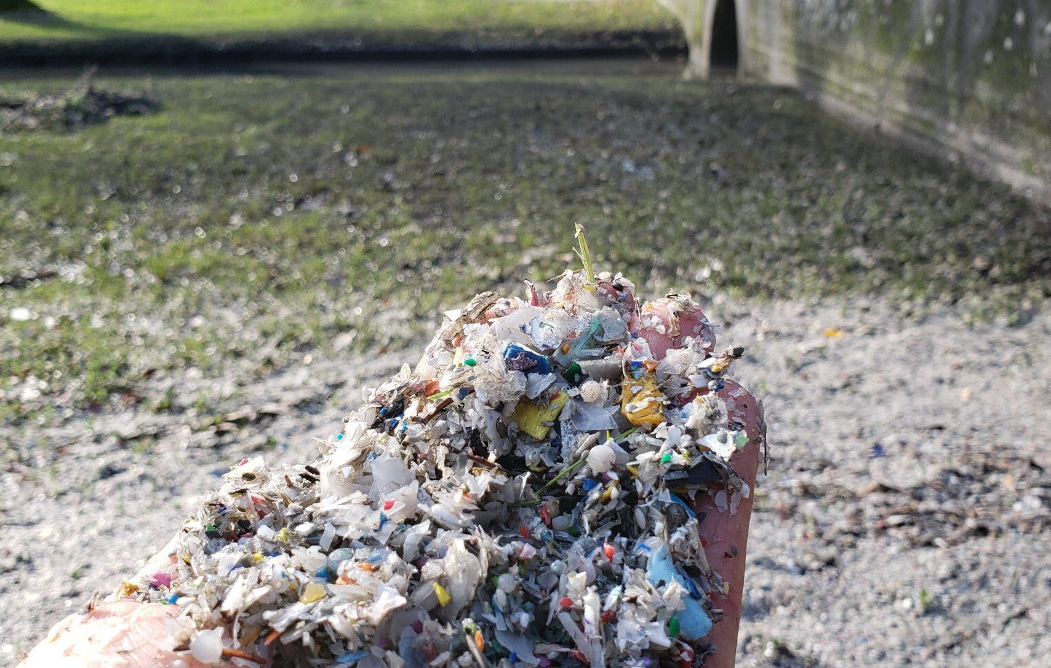 In some places on the shore, the piles of shredded plastic are up to three centimetres deep.