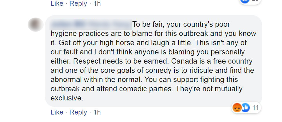 Nevertheless, when The Queen’s Journal posted their story about the coronavirus party on the popular Facebook group Overheard at Queen’s, a debate broke out, and one of the moderators, Aimee McCurdy, stepped in, saying the page would not be tolerating racist comments.