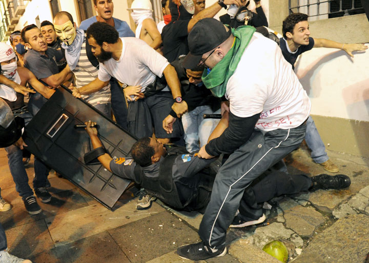 Vandalism and violent clashes with police similarly marred the end of Monday’s mostly peaceful march in Rio, which left the city’s downtown stinking of tear gas. That march attracted some 100,000 people, ending with a small splinter group doing an estimated $1 million in damage to the historic state legislature building. Another mass protest is planned for Rio on Thursday.