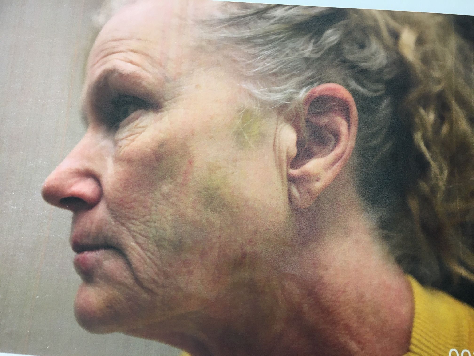 Photos of Cunningham taken in remand were also introduced as evidence, showing bruises on her face, arm and shoulder, as well as stitches on her hand. (Scroll down for the photos)