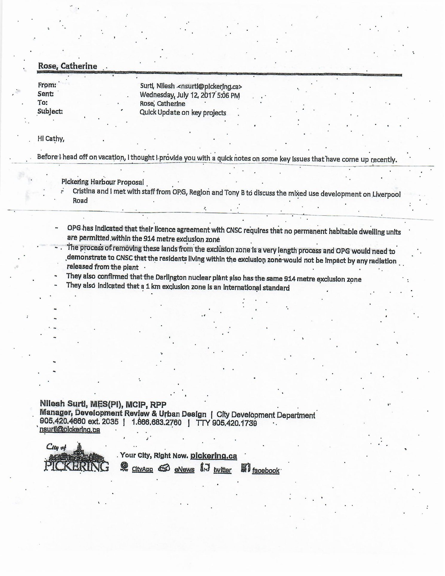 They date back to 2016, showing alleged discussions about how to make the build happen, despite the land being entirely in a nuclear exclusion zone. This is due to its proximity to the Pickering nuclear plant.