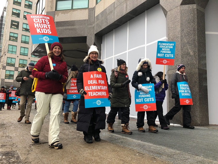 The Elementary Teachers’ Federation of Ontario has been on a work-to-rule campaign since November and has been staging rotating strikes for the past few weeks.