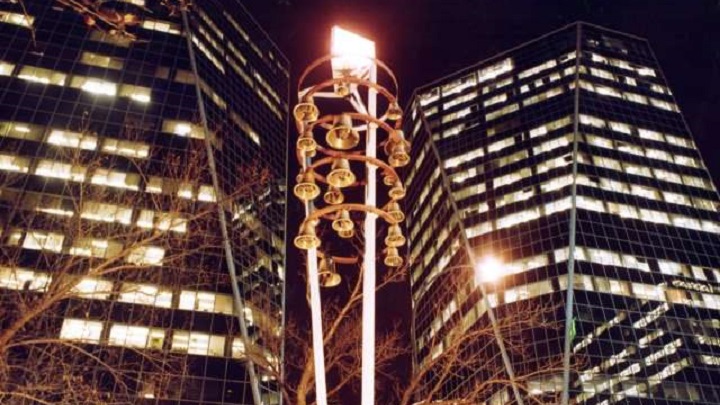 The city says restoring the structure includes “rebuilding the pedestal and installing a master control system that programs the glockenspiel using modern technology.”
