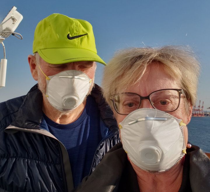They also wear masks when they go out to spend about an hour on the deck every day.
