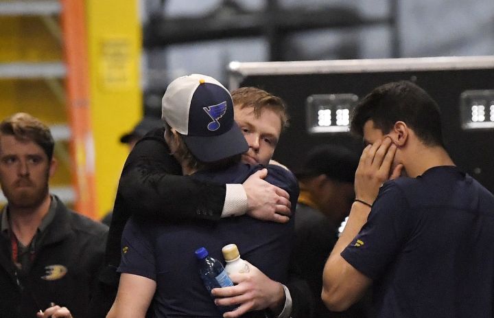 Shortly after 10:30 p.m. MT, the Blues’ president and GM, Doug Armstrong, issued a statement about Bouwmeester’s status and said the player “suffered a cardiac episode and collapsed on our bench after completing his shift.”