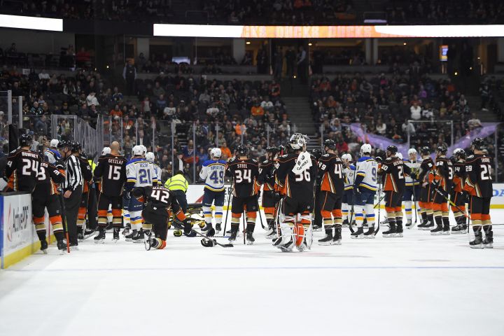 “Thankfully, with the quick response of our medical trainers, Anaheim medical trainers and their team physicians, they were able to stabilize Jay,” the statement read in part. “He was alert and moving all of his extremities as he was transported to UC Irvine Medical Center.