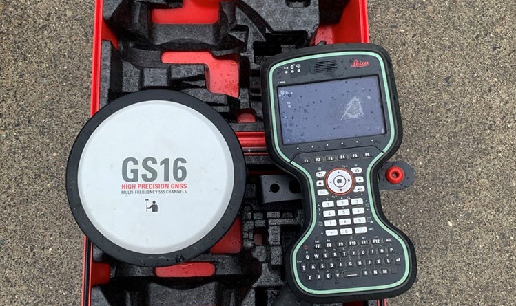 - A Leica Viva GS16 GNSS receiver, a round, flat, black and white device (in a bright red case): SN 3248216