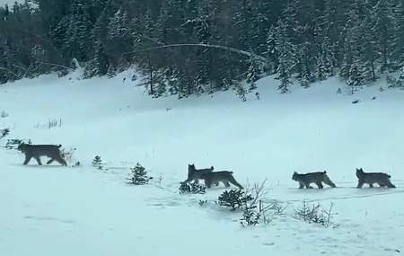 Video of a family of lynx crossing a Manitoba highway had been viewed tens of thousands of times less than a day after it was posted Thursday.