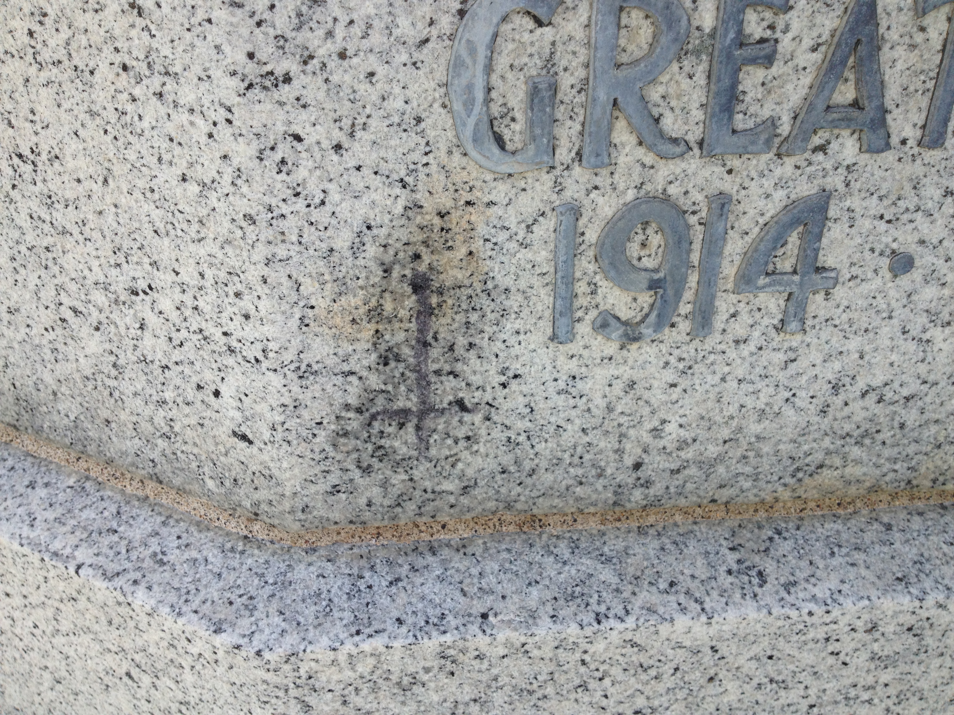 The city had to hire a graffiti removal company to remove the markings, as they were so deeply embedded in the stone. It appears that the vandals used a sharpie pen.